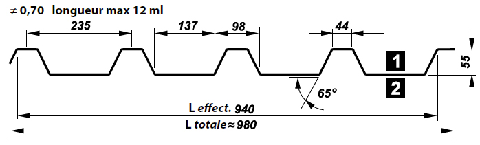 Max. Recommandée : 12 mètres linéaires (ml) - 0,70mm (Epaisseur de l'acier)